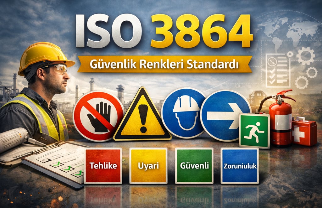 ISO 3864, iş sağlığı ve güvenliği kapsamında kullanılan güvenlik renklerini, şekilleri ve tasarım ilkelerini tanımlayan uluslararası bir standarttır. Bu standart, iş yerlerinde ve kamu alanlarında riskleri azaltmak, uyarıların herkes tarafından hızlı ve doğru algılanmasını sağlamak amacıyla geliştirilmiştir.